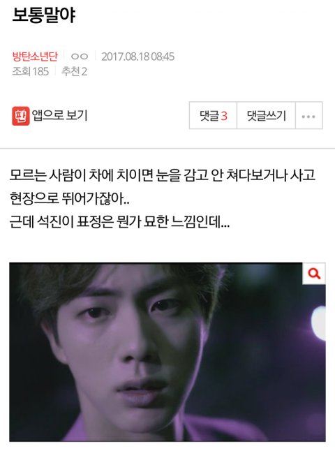 석진이가 전 에서 교통사고 났는데 데자뷰 느낀 사람처럼 굳어있는 거 아니냐는 글 보니까
