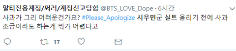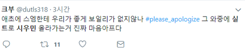 그래서 결론 니들은 사과할 생각 1도 없다는 거잖아 잘 알고가 아미들 병크 터진다고 해도 사과하란 말 하지마