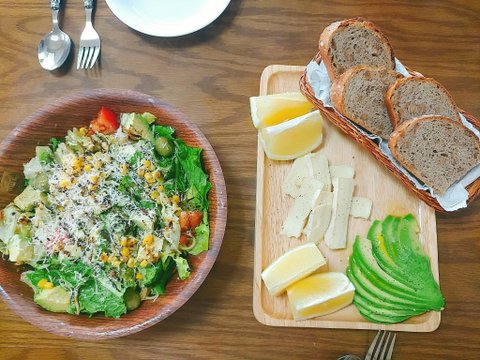 요건 아보카도랑 브리치즈 곁들여서 빵에 올려 먹었어요. 샐러드도 같이 상콤하게~