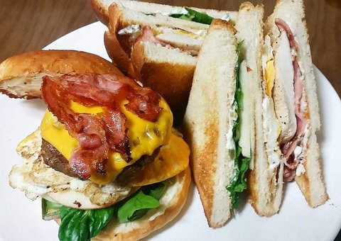 닭가슴살 들어간 클럽 샌드위치와 집에서 직접 만든 패티 넣은 수제버거~~