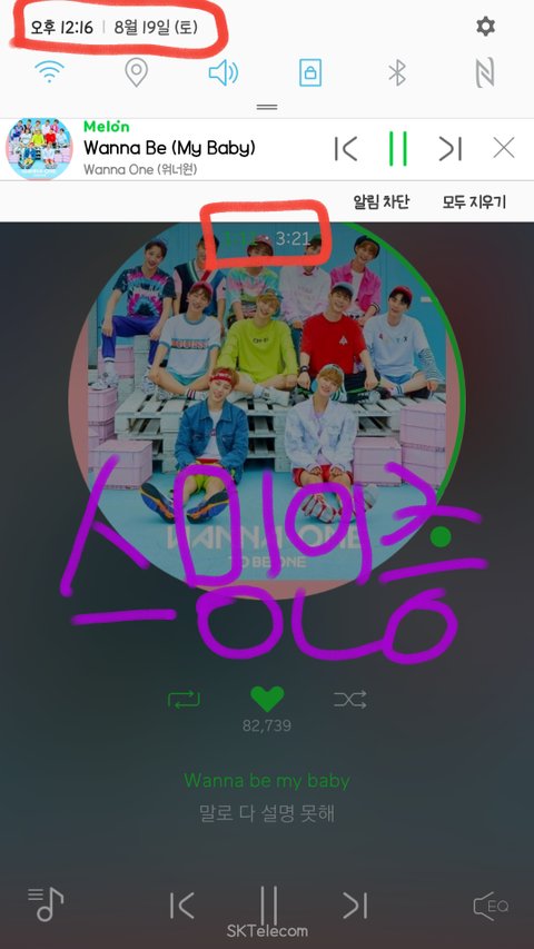 스밍인증 글씨 크게 써놓고 상단바 내려서 날짜, 시간 다 보이게 해놓고 재생 중인 시간은 가리지 말고!!! (상단바 내리고 1분 무료듣기 그거 가리는 걸 걸러내기 위함) 이렇게 하면 더 확실하잖아!! 뭘 어케 해도 도용 못 하구.