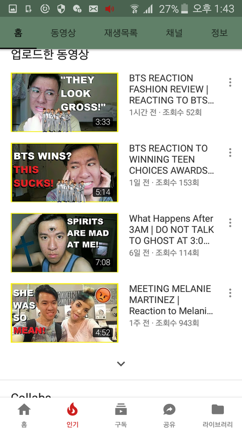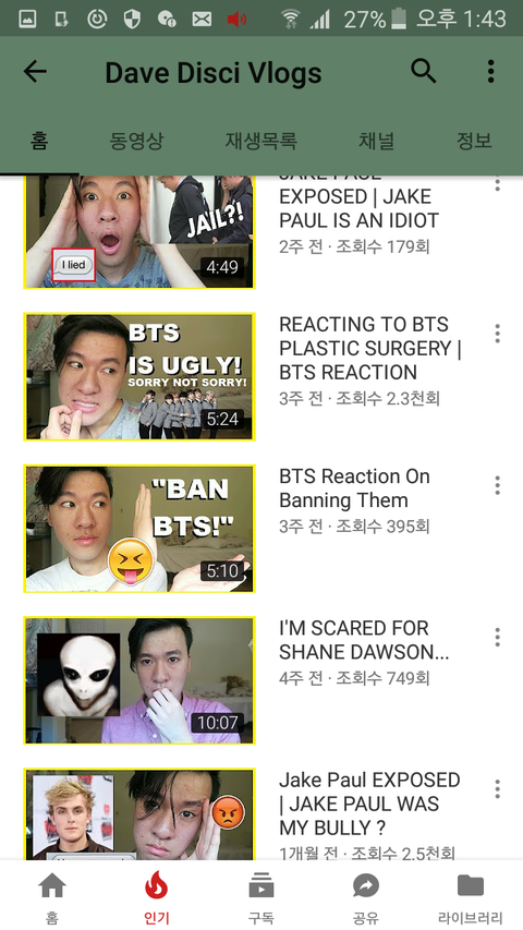 나 너튜브 서치하다가 방탄비방하는거같은 외국님자유튜버봤거든 제목이 bts is ugly 이러고 plastic surgery 이런식으로 성형했다고하고 상왜탔냐고 했는데 듣보잡이라도 신고해야겠지???