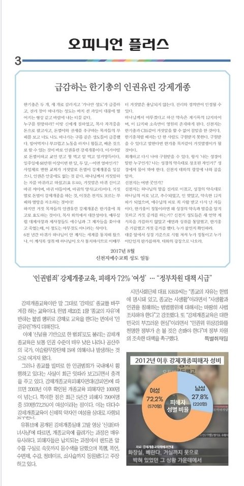 한기총 불법 강제개종교육 자행, 스스로 죄의 무덤을 파다
