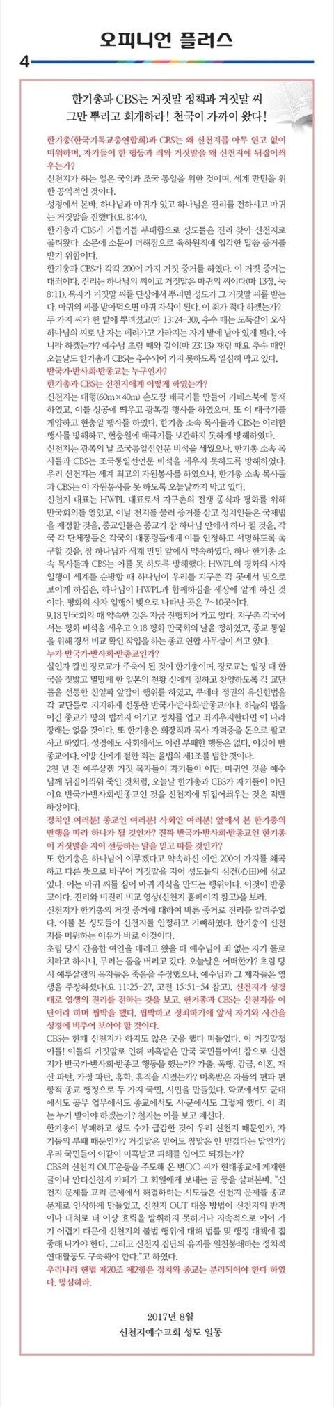 한기총과 CBS가 '신천지와의 전쟁'을 선포하고,