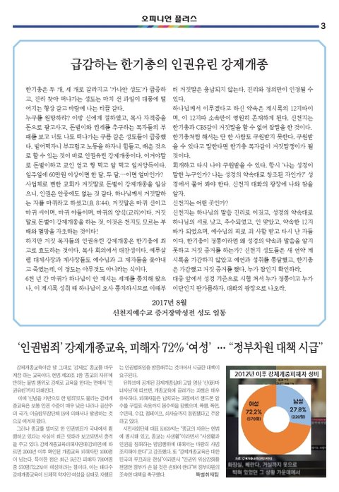 한기총에선 이에 급감하는 교인들을 데려오기 위한 수단으로 인권유린 강제개종교육을 자행하고 있습니다.