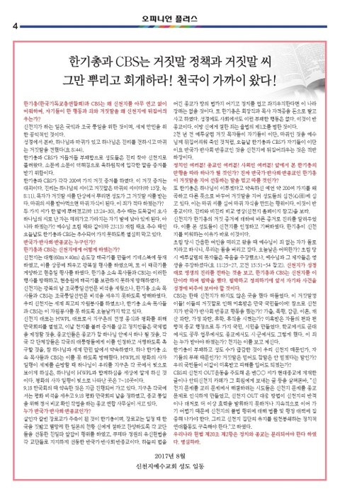 이에 한기총과 CBS 방송사에선 수년 동안 '신천지 아웃' 활동을 열심히 하며 신천지에 대한 비방을 쏟아내고 있습니다.