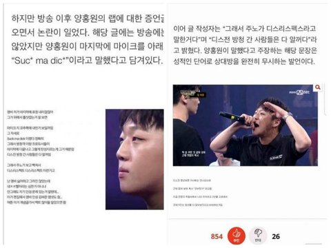 내가 직접 네이버 Tv까지 깔아서 다 쳐보고 해서 가져온거임. Best 인거. 지금 쇼미 6하면소 양홍원이 네스한태 ㅈㄲ라고 한거 그거 수소문에 들엇움 마이크 때리는데 쓰는거아니라고 그랫다매 근데 양홍원은 빡쳐서 그런거고 솔직히 니들이 난 저거위에보고 양홍원이 반성하거나 안하거나 그러는건 양홍원판단이라고봄
