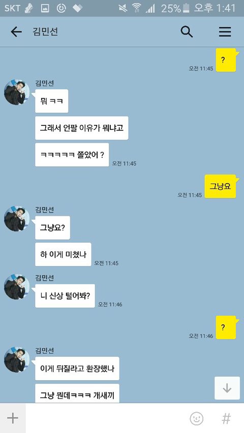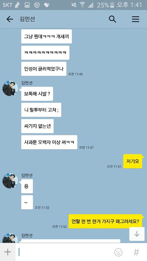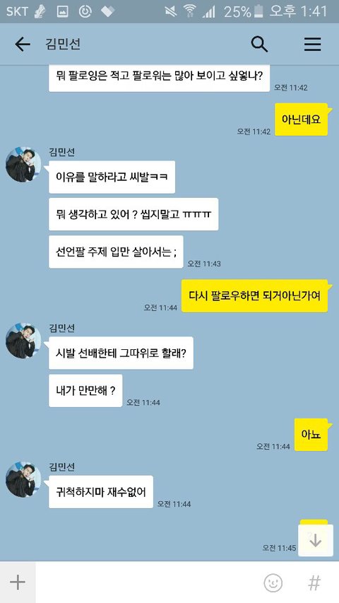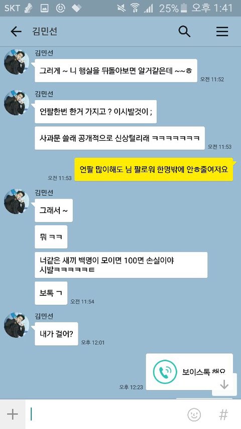 초6이 자기 인스타 언팔했다는 이유로 내동생한테 카톡아이디 알려주고 따라오라한다음엨ㅋㅋㅋㅋ 어제밤에 저 ㅈㄹ임ㅋㅋㅋㅋㅋㅋ(모르는 사이임)
