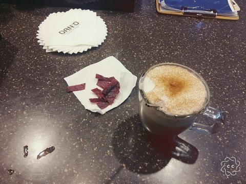 오늘은 손님들이 별로 없어서 뭐 할 건 없었어! 근데 내가 커피를 잘 못 먹어ㅜㅜ커피우유도 진짜 목이 타면 마시는 편이고 땡기지도 않고.. 이런 나를 위해 사장님께서 샷 안 넣은 카푸치노 해주셨당...♡ 그냥 초코라떼인데 거품 올리는 게 카푸치노 형식으로 해주셨어!! 사진은 넘 예뻐서 찍음♡ 육포도 주셨다! ㅎㅅㅎ 아직 레시피는 다 못 외웠는데 그래도 열심히 하면 언젠가 다 외우겠징ㅠ?