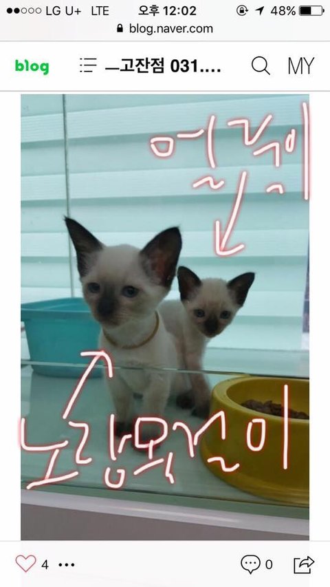 엄마가 진짜 얼룩이 보는순간 눈물이 핑돌았고 그 자리에서 미안하다고 서럽게 울었다.. 가정분양으로 잘살고 있을꺼라는 얼룩이, 노랑이 회사앞에 점심먹고 카페 가려는데 우연치 않게 고양이교배,분양 전문샵이 눈에 들어와서 유리를 처다봤는데 우리 얼룩이 닮은 애가 날보고 처다보고 손짓한다.