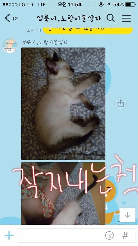 특히나 제가 아끼는 얼룩이를 분양해가서 먼저 톡을했고 잘지내고 있다고 사진까지 보내줬네요...자기집인마냥, 그리고 나머지 한마리는 우리고양이인 마냥..
