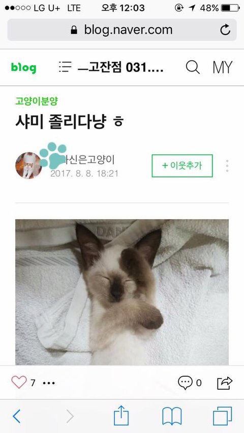 저희 샴 고양이가 8마리를 출산하여 아가들이 크니 오피스텔에서 다 키우기가 여건이 안되서 네이버 고양이 카페 X이네에 분양글을 올렸습니다.