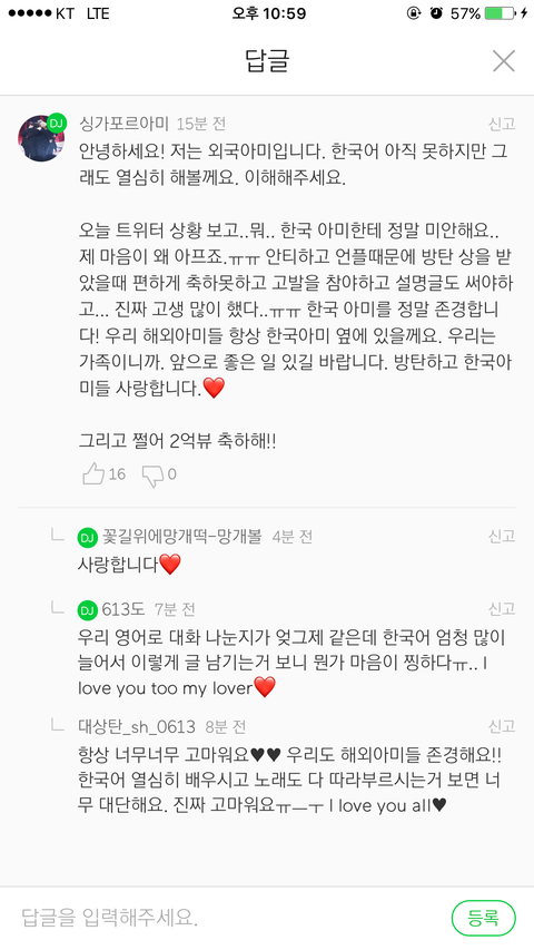 보여주고 싶어서 가져왔어.. 진짜 한국어 늘으셨다 ㅠㅠ 이분 가끔 오시는데 매번 한국말 영어 동시 말하시거든.. 그래서 한국아미 영어로 말해도 우리 해석 한다고 했었는데...
