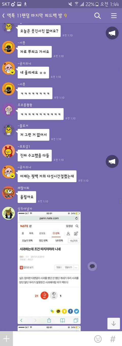 먼저 3시간동안 사담은 일절 없었으며 다 끝나고 약 10여분의 시간동안 수고인사를 나누었습니다. 이게 문제라면 앞으로는 피드백이 끝나자마자 다 강퇴시키겠습니다.