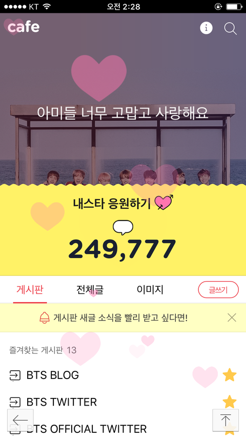 벌써 2등되면 아떡해ㅠㅠㅠ 그냥 응원하기만 누르면 되는데 나 하나쯤은 이런생각 가지지말고 제발 좀 해 나중에 후회하지말고 난 밤새서 계속 한시간 마다 할려고 이삐들도 제발 좀 해ㅠㅠㅠ