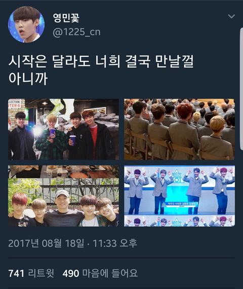 워너원(우진대휘)과 엠엑스엠(영민동현) 비록 다른그룹,시작은 다르지만 한계단씩 밟아올라가면서 성장하고있는 모습들 너무 사랑해...언젠가 만나자 더이상 브랜뉴즈가아닌 새롭고 유니크하고 세상에서 젤멋진 그룹이름을 가진 팬톡에서!