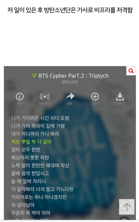 ㄹㅇ걍 방탄한테 별 애정 없다가도 방탄이 저새끼 디스하는 부분나오면 옳지 이거야 시 발 이러면서 보게되는글ㅋㅋㅋㅋㅋㅋㅋ..한번씩 보셈. 걍 방탄팬들 멘탈존경하고 방탄도 멋있다