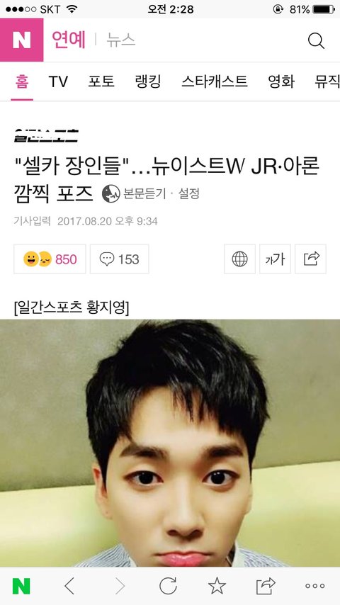 아니 우리애들 셀카 찍은것도 기사가 났어ㅎㅎ