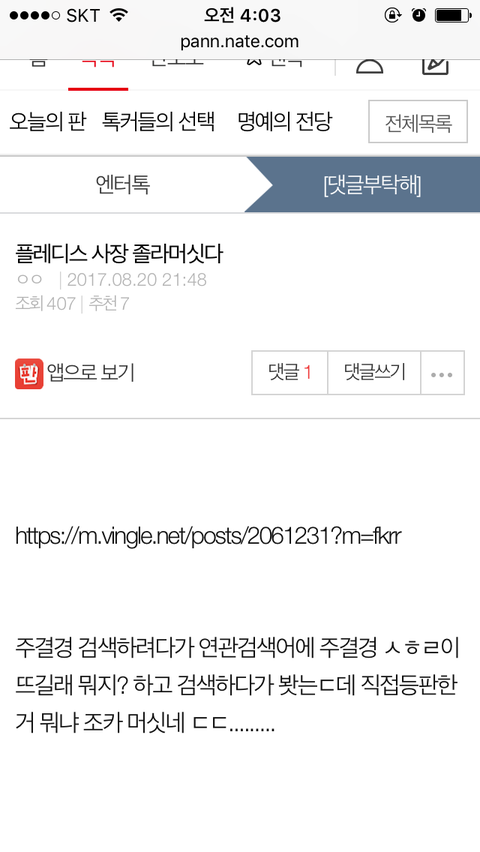 ㅇㅌㅌ 눈팅하고 잇었는데 이런글이 있는거야