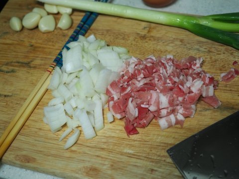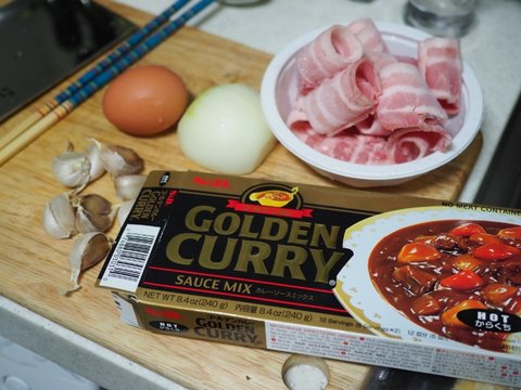 재료는 카레 마늘 양파 파 계란 고기. 1인분이기에 단촐하게 갑니다.