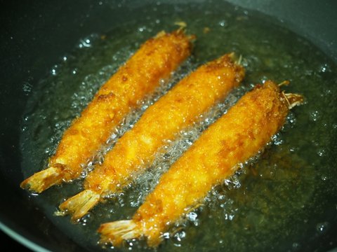 마트에서 사온 새우튀김도 튀겨서 토핑으로 준비해두고