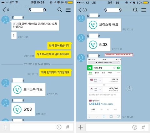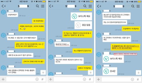 오후 두시 쯤, 숙소 앞에서 보이스톡 했더니 받지는 않고, 아파트 체크인중이니 메세지로 보내라더군요. 그래서 환불하고 싶다고 메세지 보냈더니 전화 받지도 않던 사람이 보이스톡이 오더군요?