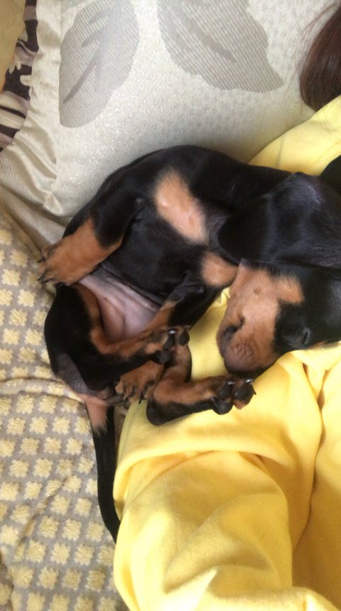 다른 강아지들 사진 보니까 우리 아가도 자랑하고 싶어져서 ㅋㅋㅋ이제 6개월 넘은 닥스훈트임.