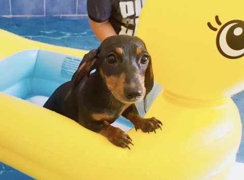 애견펜션 실내 수영장!! 바들바들..물 겁나 싫어함ㅋㅌㅋ다른 닥스들은 물 좋아한다던데..희한함ㅋ