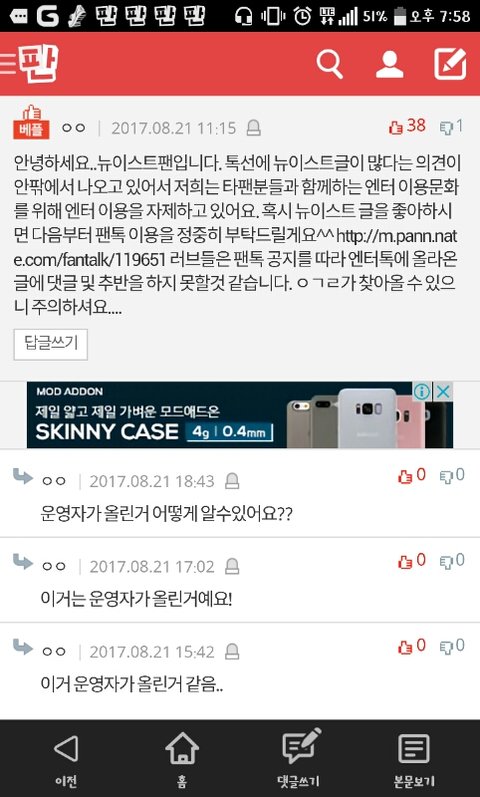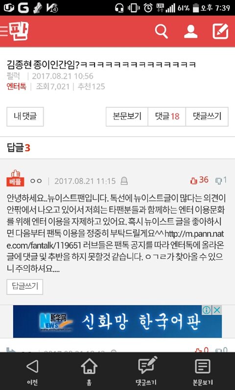 또 올라온거 있음 알려줘야지 하고 마실다니는데 러브들이 저 글에 베플을 올렸더라고, 당연 나도 추천했지!!!!!