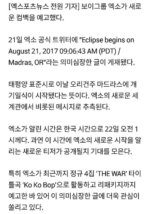 "Eclipse begins"..엑소, 의미심장 메시지로 컴백 예고