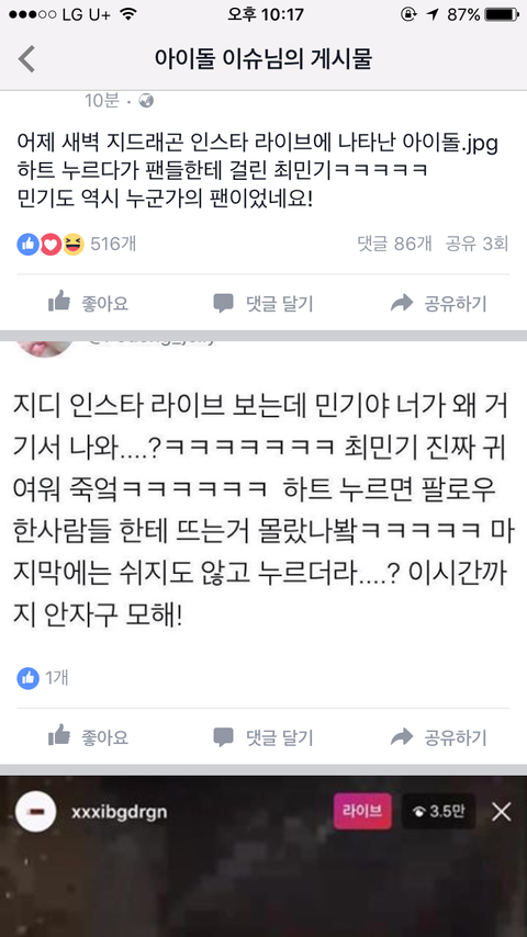얼굴책에 올라온 민기군 너무 겨워서요ㅋㅋㅋ