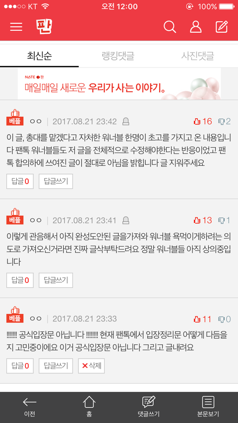오늘의 팬톡
