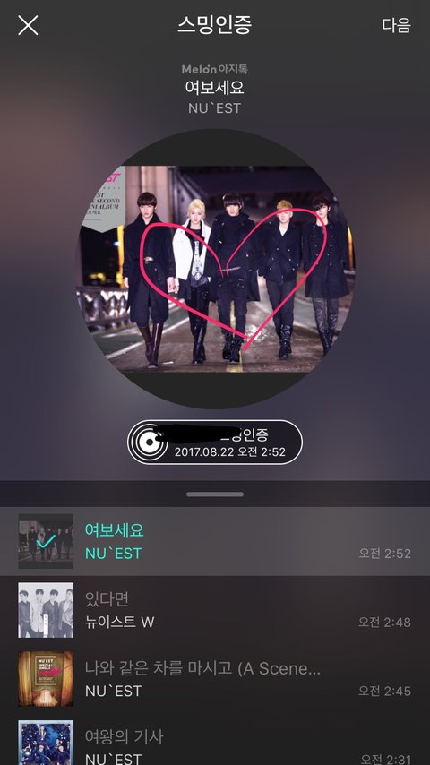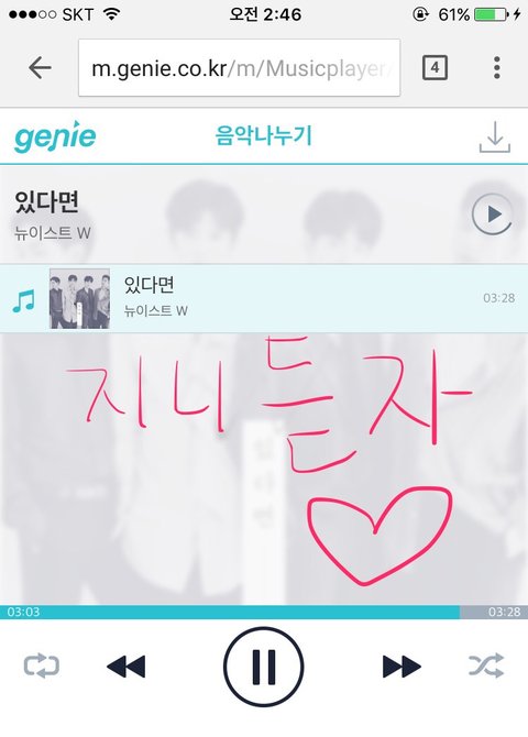 뉴이스트 음악나누기(짹 @nuest_genie)에서 올려주는진이 음악나누기가 하루 4000회도 소진이 안된다ㅜ