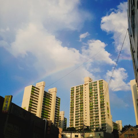등교허더거 그냥 무심코 하늘 봤는뎅... 나 살아생전 무지개 첨봤어