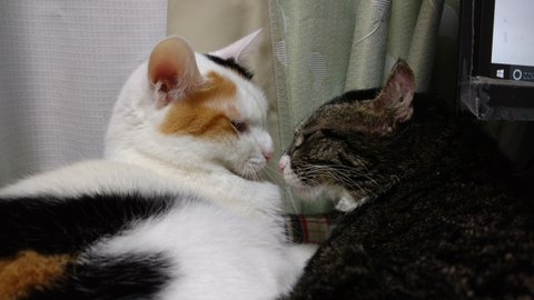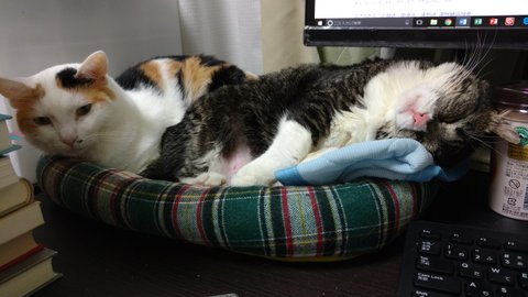 집사가 좋은 퐁타와 모모는 매일매일 집사 책상에 놓인