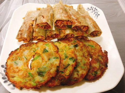 초복에 가족들하고 저녁먹으면서 먹고싶어서 만들었어요(감자전 가운데 구멍내면 안과 밖이 다 바삭하다 해서 해봤는데 진짜 꿀맛!)