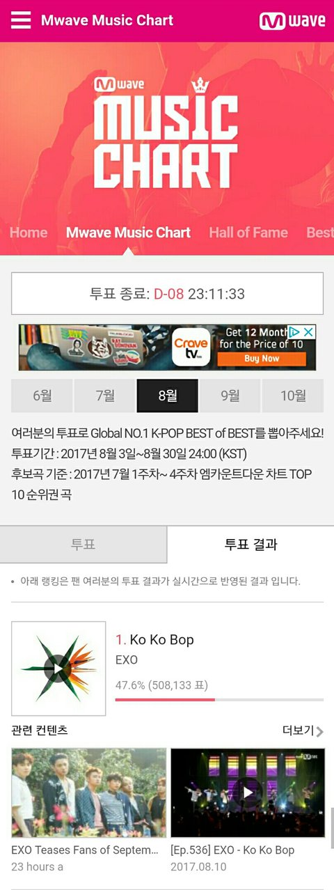 월간 투표를 이겨야 MAMA에서 Mwave Music Chart 최종 후보에 오를 수 있음