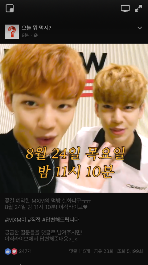 먹방이래ㅜㅜㅜ 페북에 떴어!!!
