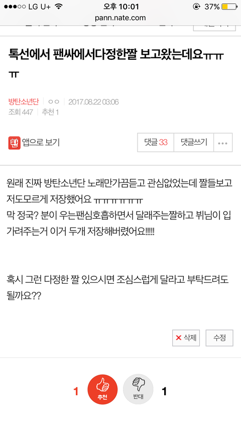 +감사합니다!!!)톡선에서 팬싸다정한짤 보고 왔는데요!!!!!!!