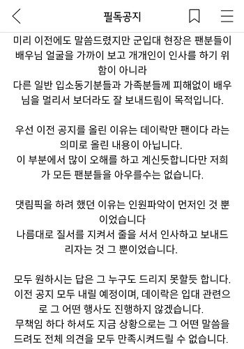 1차공지 이후 팬들의 반발로 게시한 2차 공지에선