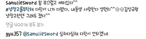 김성규형 냉장고에는 그래도 졌다^^ ㅋㅋㅋㅋㅋㅋㅋㅋㅋㅋㅋㅋㅋㅋㅋㅋ
