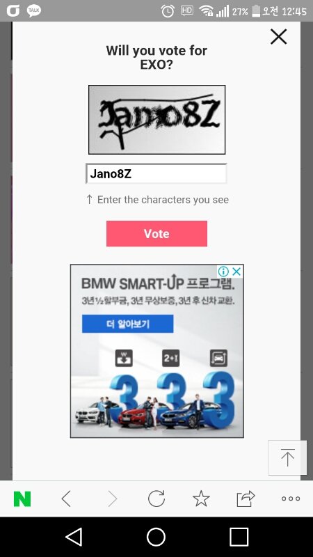 ㅅㅂ 조카 저 보안문자입력하는거 로그인할때마다 투표할때마다 입력하는것도 조카 빡치는데 투표하ㅏㄹ때하는 문자는 뭐라고 적혀있는지도 모르겠음 조카빡쳐 역시 암넷