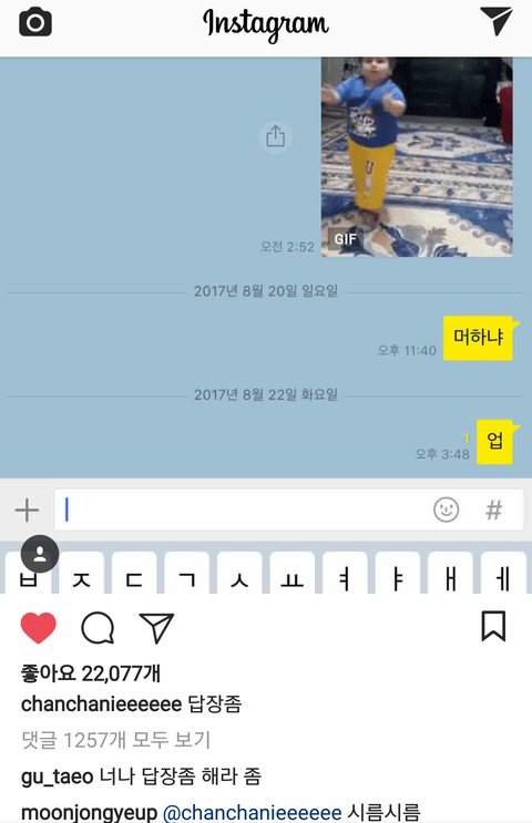 인별에다가 해줬어 ㅋㅋ 형아랑 밀당해 ㅋ