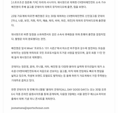 진영이 씨구 소속사신인걸그룹 뮤비에 나온대!