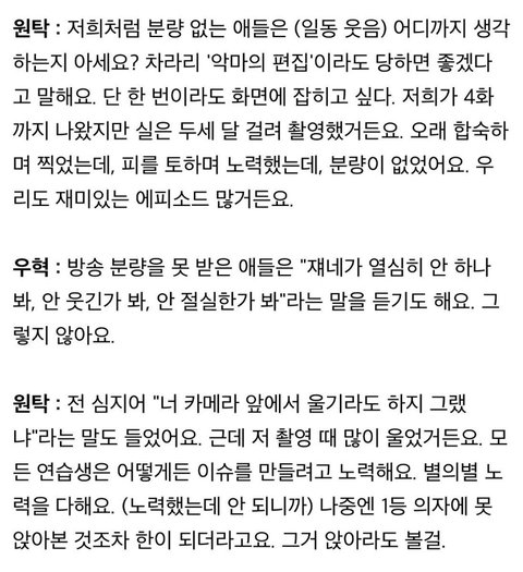 분량 받으려면 치열하게 일부로 갈등 유발 상황이라도 만들라고 부추기는 꼴 아님?