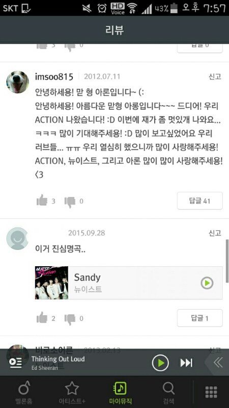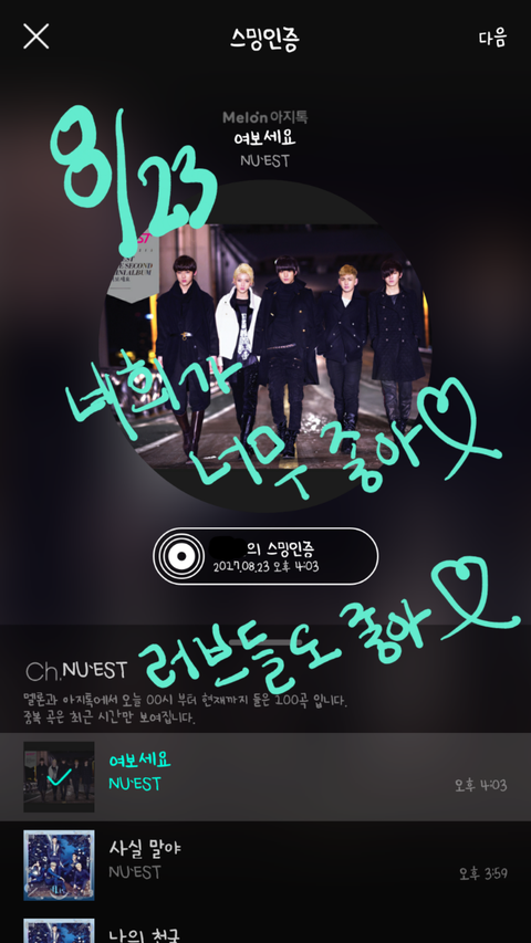 헐...악숀 앨범 리뷰보니깐 아롱이말고 다른 멤버들 글도 있어..우리 애들 다 서양수박 쓰는구나..☺