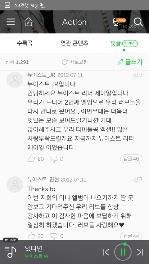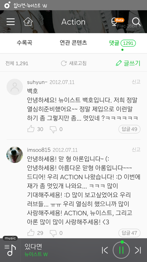 플디의 이 소설의 끝을 다시 쓰시는 분도 앨범마다 댓글 쓰시는데 아롱이도 댓글 쓴거 보니깐 이건 플디 가수의 공통점?! 이런 생각도 들고ㅎㅎ