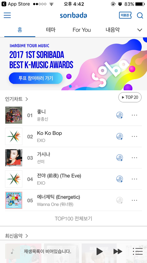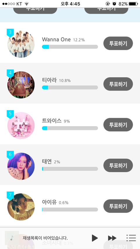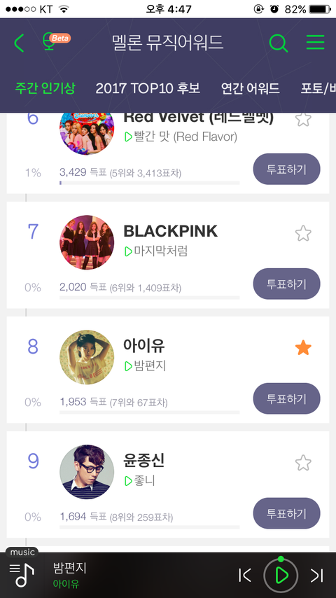 소리바다 앱을 깔아서 저기 보이는 투표하기 누르고