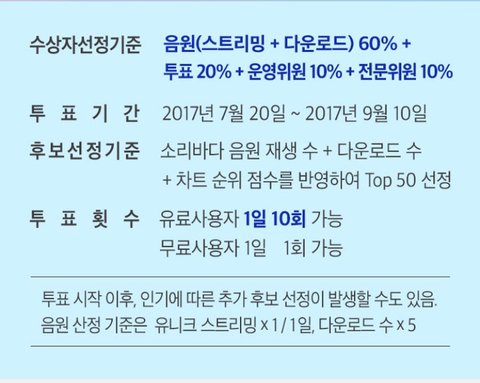 투표는 9월 10일까지고 소리바다 어워즈는 9월 20일에 열려!