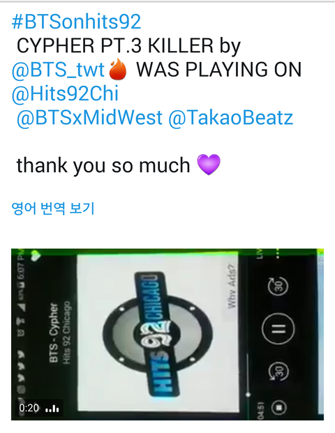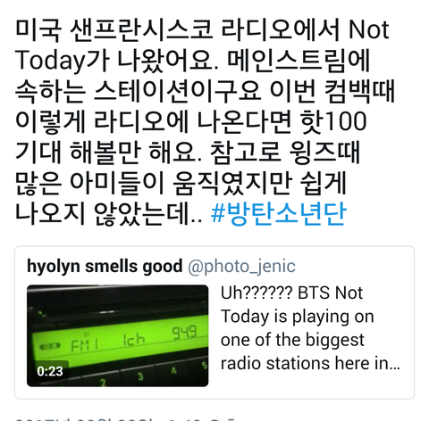 미국 메인스트림 라디오에 방탄 not tdoay 싸이퍼3가 나옴